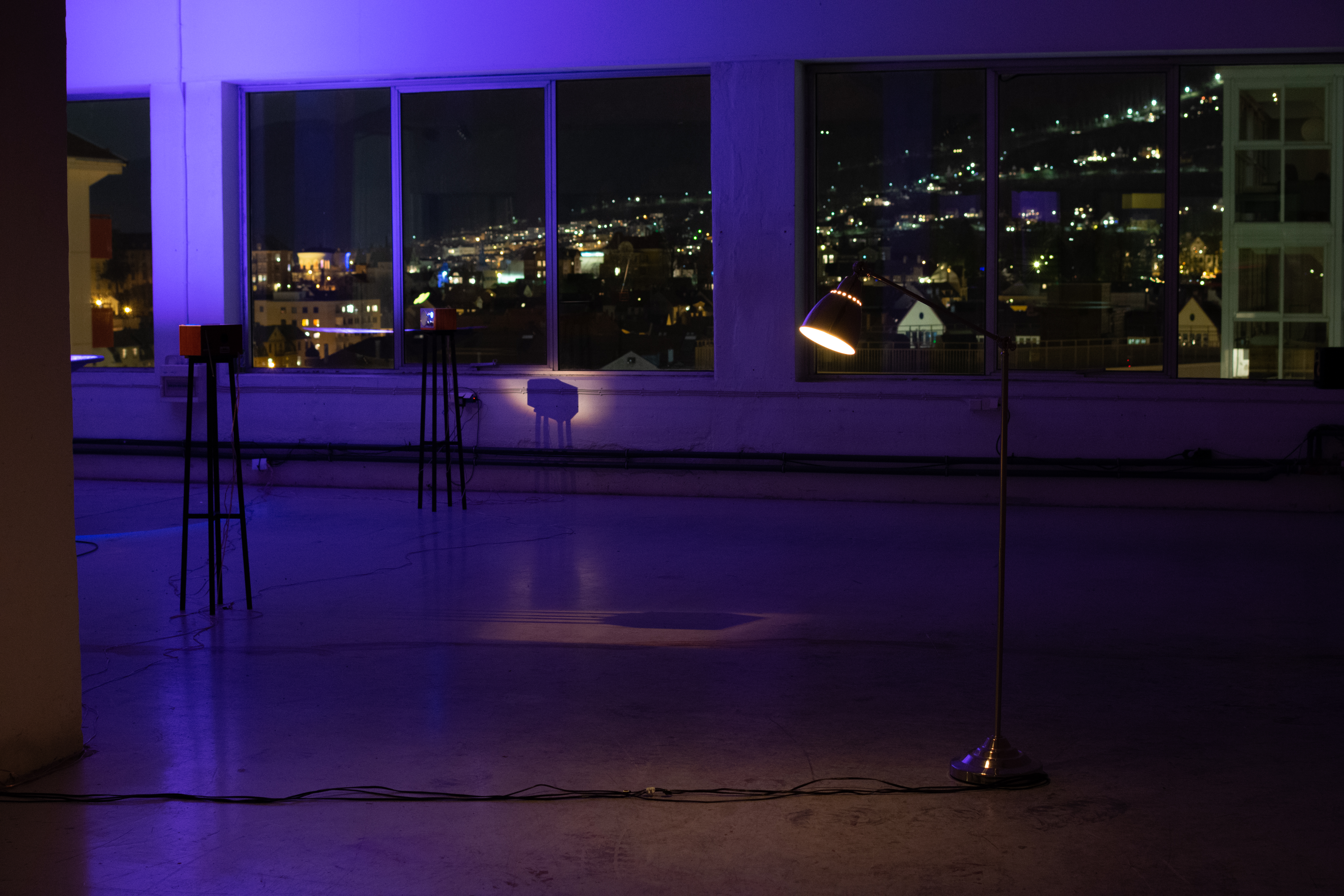 Kinetic electronic sculptures, video, sound, software, motion sensors.
